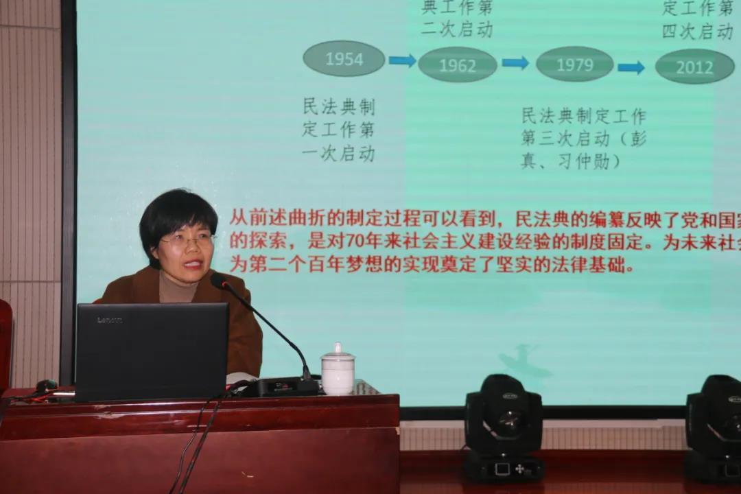 为深入贯彻习近平总书记关于学习贯彻民法典的重要讲话精神,学习好、推进好、保障好民法典的教学和实施,做学习、传播、遵守、维护民法典的表率。12月18日下午,sjb世俱杯官网组织全体教职工进行了民法典集中学习活动,学院民法教研室、法律系焦慧君老师以《幸福民法典》为题,从民法典立法背景、立法理念、立法体系和精神等方面带领教职工进行了集中学习。